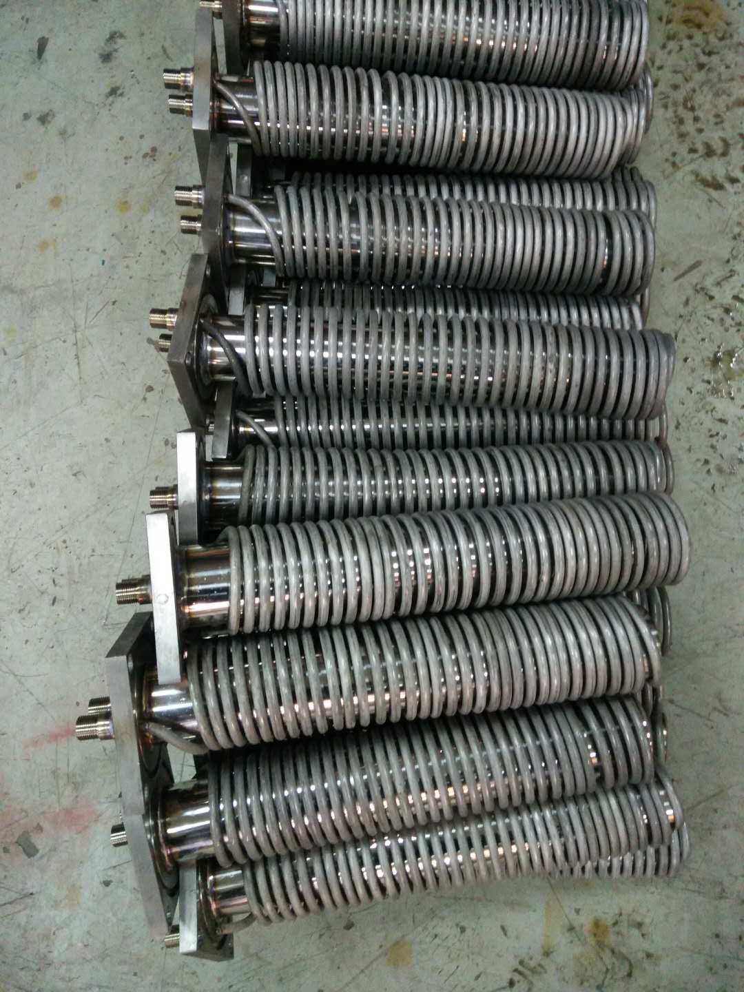 外筒體和盤管才用法蘭聯接,更換盤管或對冷卻器進行清洗,只需松開法蘭聯接螺栓,取出盤管,無需拆卸冷卻器筒體。非常方便。